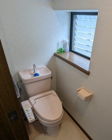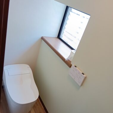 トイレの交換に合わせて、壁のクロス、床のクッションフロアを施工しました。