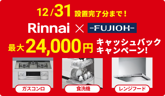 ※リンナイキャンペーンとFUJIOHキャンペーンの対象製品は一部異なりますのでご注意ください。