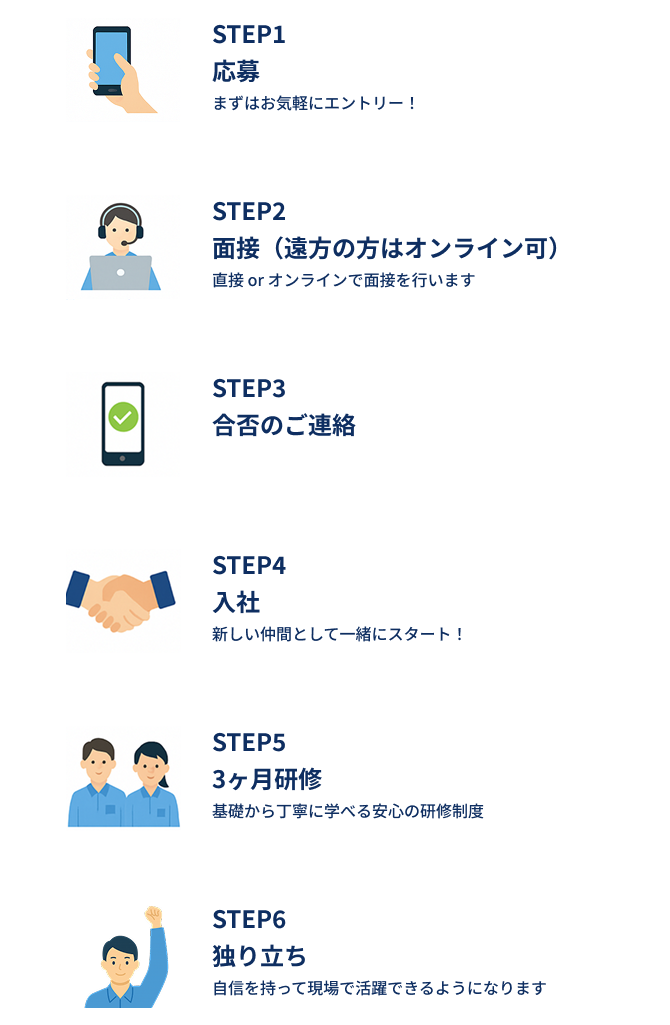 | 求めている人材 | 将来の安定を目指す方、大歓迎