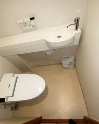 大阪府吹田市でトイレ交換工事・クロス・クッションフロア施工・トイレ内換気扇交換・手洗器の交換工事の内容で、工事のご依頼をいただきました。トイレ内の全面リフォームです。交換にお選びいただきました商品は、トイレ・手洗器共にLIXILの商品で、トイレがアメージュ便器、手洗器がキャパシアという商品です。アメージュ便器は当店でお得な商品代金・工事費・廃材費・消費税を含めた価格でご用意しております、工事セットプランの商品で大変人気の商品です。キャパシアは手洗器下にキャビネット、サイドには紙巻器付きのサイドキャビネットが付いております。サイドキャビネットを開くと、ダストボックスも設置しており、座ったままゴミを捨てれる仕様です。クロスは大人な空間演出にもってこいのRE-7532です。床はHM-5082で落ち着いたトイレ室内になる組み合わせです。トイレ内の換気扇は元々設置されていました換気扇と、同等の商品で交換しております。